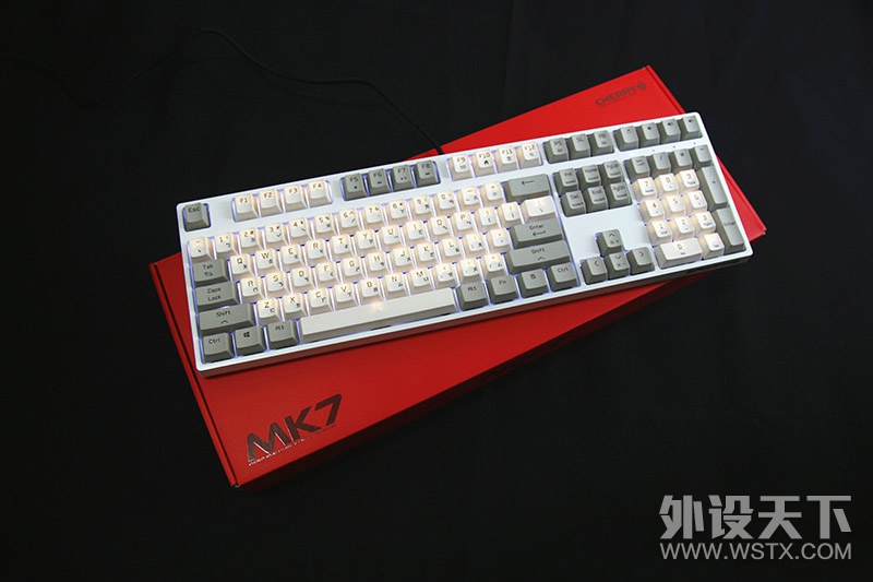 外包装为红色设计,明确标示出了产品型号以及使用Cherry轴。