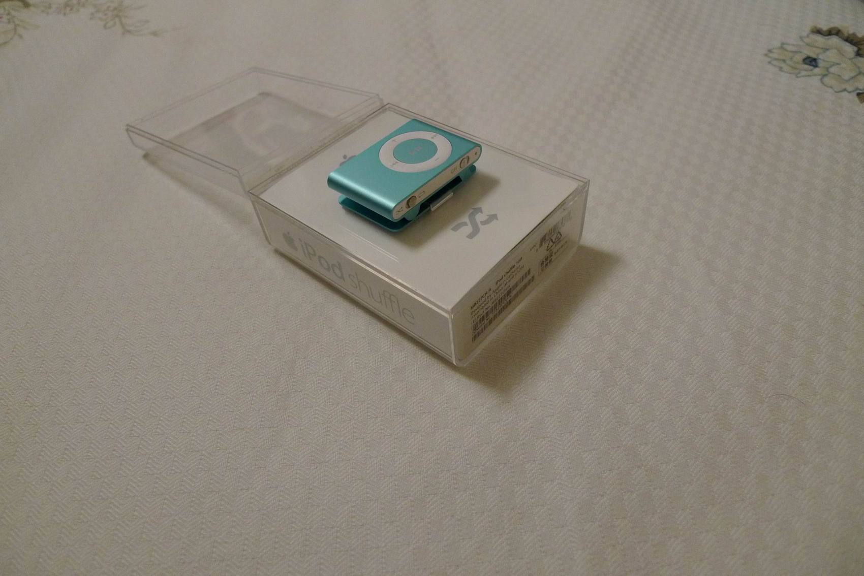 本帖最后由 绝地风暴 于 2010-4-10 21:56 编辑 冰蓝shuffle 1G,国行原装箱说全(盒子,说明书,保修卡,苹果贴纸,原装底座,原装小白),运动随身比较方便,机器使用时长不超过一个月,成色定义 ...
