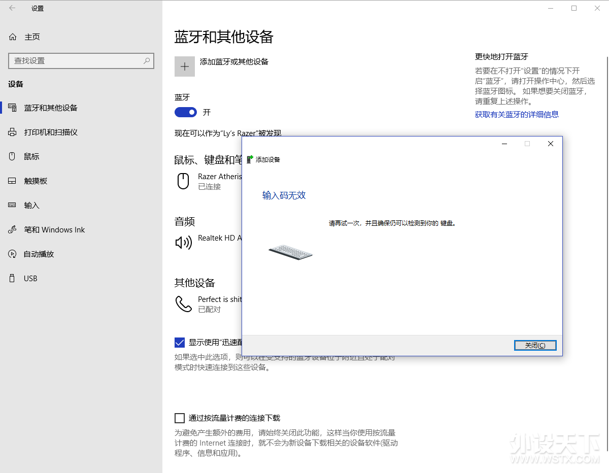 才入手的Filco忍者2代双模,蓝牙连接电脑时提示输入码无效。 现在一直连接不上电脑,请问各位大佬怎么处理。