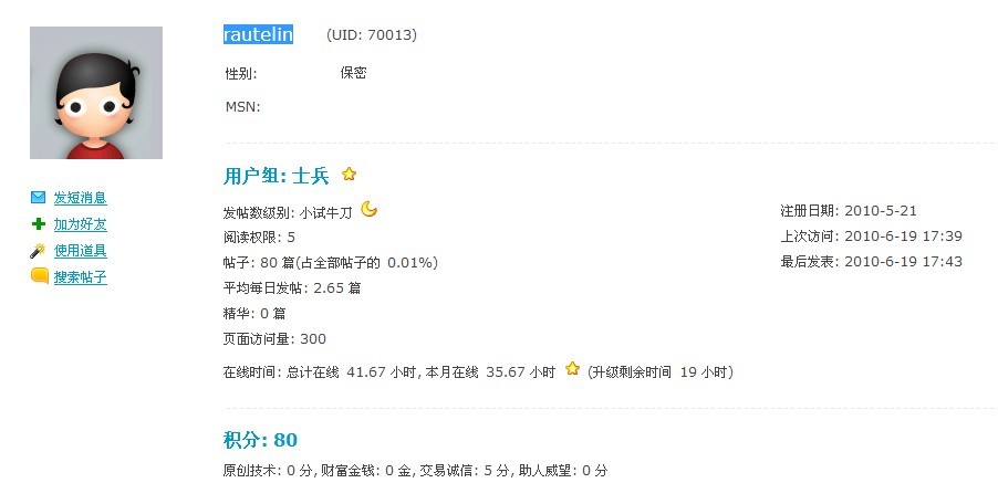 兄弟您这号注册一个多月就出来回这个贴不容易啊,还能根据自己的交易习惯洞悉出真相。 prodigy_l 发表于 2010-6-20 21:30