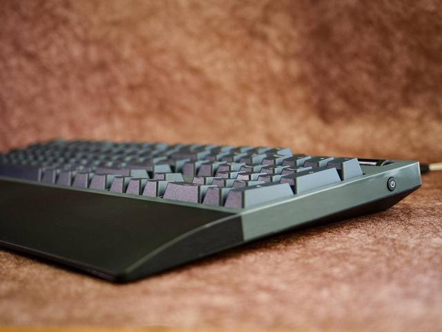 现在窄边框键盘和全面屏手机一样成为主流审美,不过G521的设计并没有为了窄边框而窄边框,顶部的空间设计的非常充足,这能让三模切换的按键和TT键盘的招牌音量控制滚轮的排布更加从容,这种设计我很喜欢。不会为了设计成窄边框而压缩这些功能键的尺寸,或者因为摆放的太过紧凑而用的不顺手。