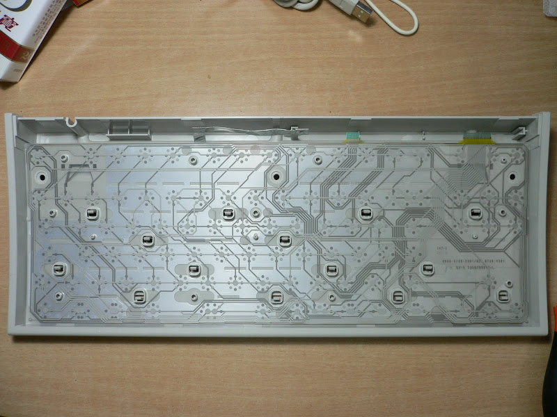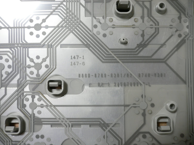 薄膜印刷线路,三层结构(所有薄膜都是如此,除了导电橡胶的),很清晰,材质柔韧。接口部分均做了加强处理,日本人的细心可见一斑(这点也是我们需要学习的地方)