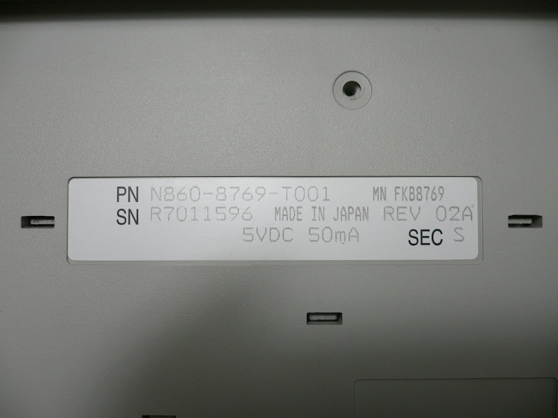 Fujitsu N860-8769-T001 按照我们习惯的型号就是 Fujitsu FKB8769-T001 这是一款80%大小的键盘,采用的是富士通的机械薄膜架构,接口为USB接口,支援Unix、Linux、Mac、Win多种平台,次为定制形产品,可以贴牌(上logo)并有着不同功能的扩展能力(主要为USBHUB、键盘灯等),相信其衍生型号也有发布。(这款键盘资料不是很好找,语言障碍啊,玩键盘要想完好了也得是个语言专家了……-_-!!)