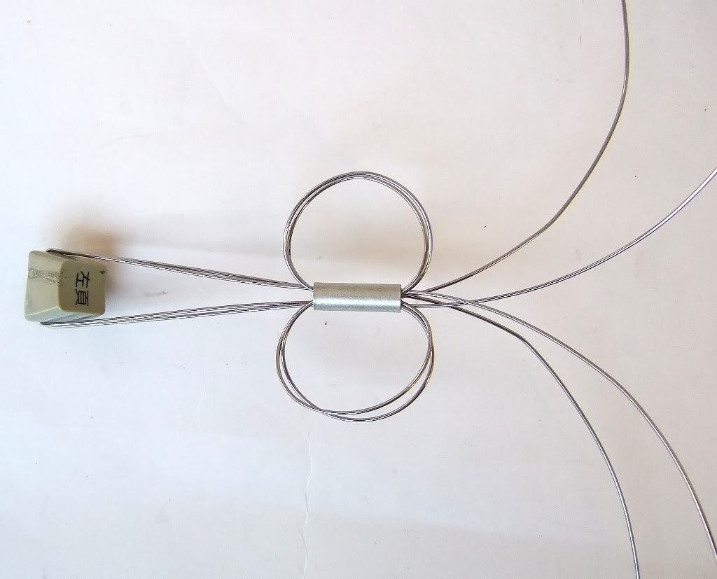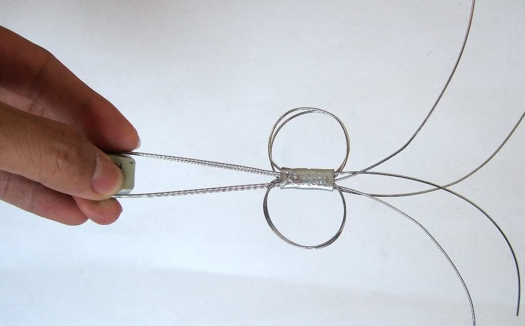 图05=再将另一条线的尾端绕一个圆圈穿入铜套,,依序完成四条线绕四个圆圈穿入铜套。