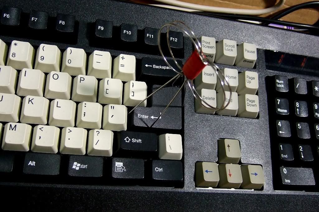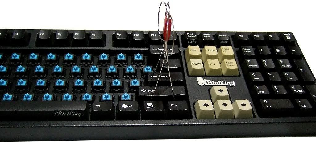 顺势滑下即可顺势套住键帽,即可很轻松的拔下键帽(拔大键帽要稍微搬开一些才容易放入,,,因为弹
