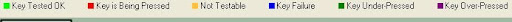 对于PassMark KeyboardTest上的键盘视图有而实际键盘上没有的按键,软件会用黄色斜格标出。如笔者的笔记本电脑上没有“WIN”键,在PassMark KeyboardTest中就会标示出来。然后依次点击键盘上的按键,绿色斜格标示的按键是完好的,而红色斜格标示出的则为损坏或者不够灵敏的按键,键盘的好坏便一目了然了。