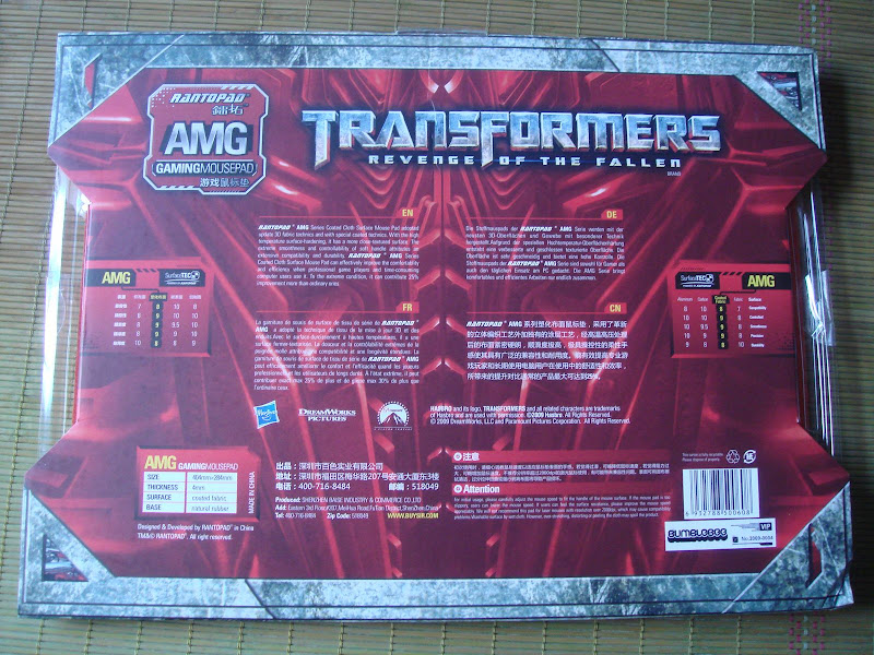 稀稀落落一大堆,就简单总结下。个人认为此款鼠标垫子在布垫加涂层上并无出彩的亮点,中规中矩吧,因为涂层需要时间和鼠标来鉴定。图案印刷上有绝对亮点,首先层次感和质感十足,色彩搭配近乎完美,这功劳也许是美国人的吧,但是镭拓能还原到这地步也不错了。这种授权图案的的方法好像是第一次引进吧,也算亮点了,总算摆脱山寨嫌疑了。个人认为价格稍高了点,控制在百元以内可以让更多烧友有兴趣吧