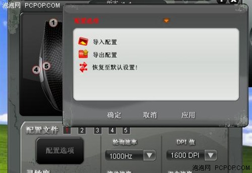 驱动最多支持五组的配置文件选择,用户可以把自己不同环境下的操作设置保存起来,需要时可轻松调取。