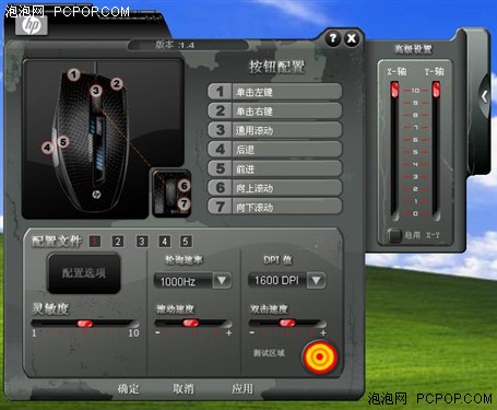 五档可调,可承受最大加速度20G,1000次/秒的报告速率,五个可编程的功能键…高性能的配置也让我们看到了惠普进军游戏外设领域的能力与信心。
