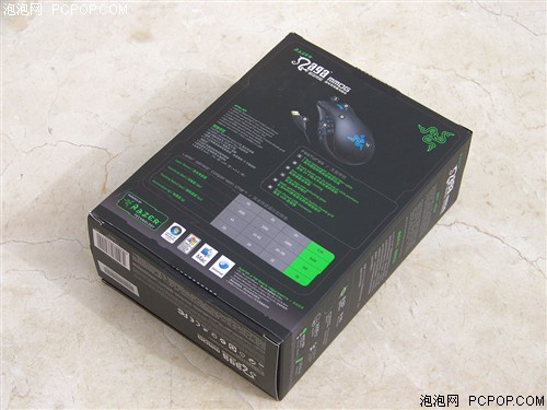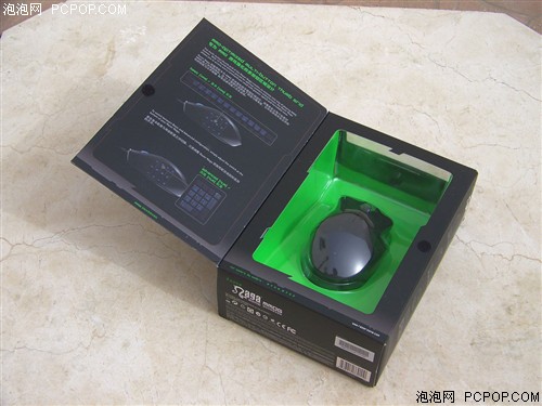 Razer那伽梵蛇游戏鼠标的包装风格我们都很熟悉,无论是包装的色调,还是包装盒的样式,都是我们“司空见惯”的Razer传统风格。另外,在包装盒正面的左上端,印有鼠标驱动下载地址链接,这也表明了Razer那伽梵蛇游戏鼠标并没有附带驱动光盘。