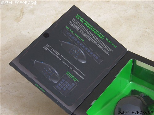 Razer那伽梵蛇游戏鼠标的按键数量之所以多达17个,其中的12个拇指键“功不可没”,在那伽梵蛇游戏鼠标包装的“扉页”上,印有这12个拇指键的功能图示,这12个拇指键有“基本配置”和“高级配置”两种工作模式可以切换使用。