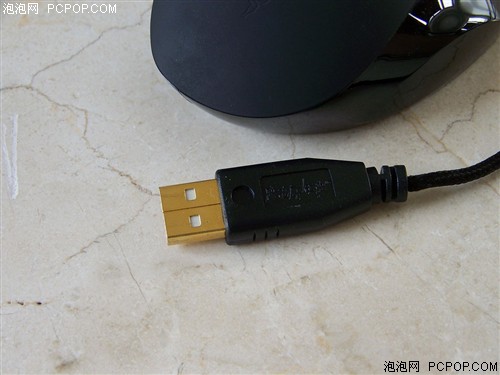 Razer那伽梵蛇游戏鼠标采用了镀金的USB接口,鼠标的报告频率/响应时间为1000Hz/1ms,并使用了编织面的连接线。