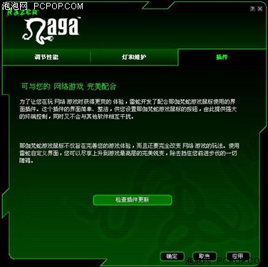另外,Razer还针对游戏做了插件(AddOn),可以理解为应对某款游戏对鼠标的有针对性的配置文件,可以从Razer的官方网站下载,安装使用,目前有《魔兽世界》和《Warhammer》两组Addon可供下载。对于不想自行设定的玩家,可以使用现成的插件。