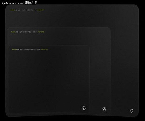 三款鼠标垫的型号为Sargas 460、Sargas 360和Sargas 260,厚度均为4mm,Sargas 460尺寸最大,为460×390 mm,另外两型号对应的尺寸为360×305mm和260×220m m。