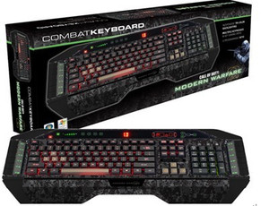 基于人体工效学设计的现代战争2精美键盘是游戏发烧友的首要选择和贴心伴侣。其主要特征有:通过Tru Vu照明映射键盘键(混合光映射效果从红色、琥珀色直到绿色)和亮度调整实现多彩背光效果;触摸敏感背光控制挡板;WASDcursor,Cyborg”和NumPad键能不同于其他一般键和常用高亮游戏键而独立发光;Cyborg模式——通过按相关按钮能实现快速锁住Windows键和游戏键色彩和亮度的配置;设置和记忆功能——持久键亮度设置能确保色彩不变,甚至在系统重启后依然能保持该效果;12可编程“Cyborg”键;游戏区高硬度镀金键CAPSUSB接口和耳机音箱及麦克风插孔;多种按键组合功能实现游戏区复杂命令操作执行;方便腕部休息切键盘可进行前后倾斜度调整;镀金USB音频连接器。本精美键盘主要适用于Windows 7, VistaXP操作系统。