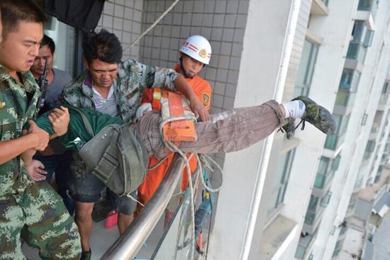等待消防人员解救