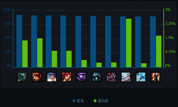 全部段位英雄登场率数据