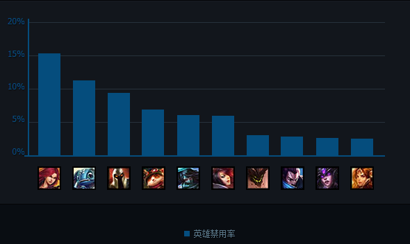 在本周的BanList排名中,卡特依旧稳居榜首,其次则是小鱼人,可以看出Ban人主要针对高爆发的刺客型英雄,如卡特、小鱼人、阿卡丽、剑姬、亚索等都是非常典型的后排杀手。其次是支援能力强、团战强的英雄如潘森、石头人、日女等英雄、此外还有高爆发法师的辛德拉以及非常恶心的提莫,大部分Ban人都是为了保障后排的生存。