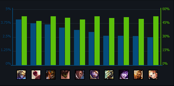 又到了一周伊始,一起来看看上周LOL国服的详细数据吧,经常查看游戏数据能够帮助我们更好地掌握版本特点,是排位分必备的技巧。