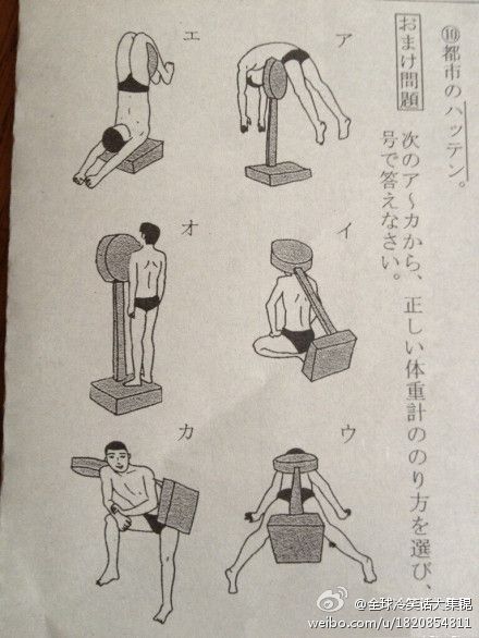 日本小朋友的考试题,在称体重时,下列选项中哪一个才是正确的姿势呢?有点难啊。