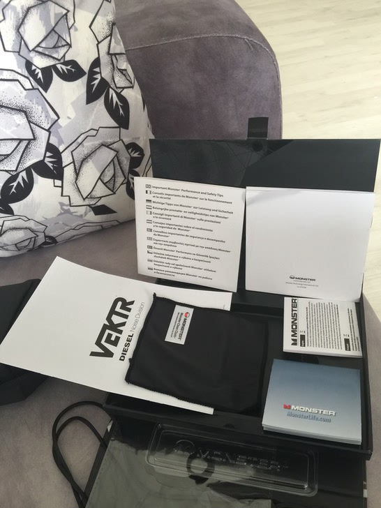 Monster Diesel VEKTR魔声迪赛维度耳机,朋友帮美亚代购于去年下半年,用的不多,也很爱惜,一般都用音箱,成色9新,配件,包装,说明书都全,连里面的塑料袋都成色如新。因为平时打CS:GO,这个效果也还可以,就是没法电脑语音比较蛋疼,准备买个赛睿的大轮胎,所以想卖掉这台。