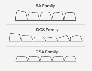 常见键帽剖面图及高度对比,此次Granite 花岗岩为DSA family高度 键位说明,你看到图中的键长短 ,颜色就是你最后拿到的东西,仔细核对