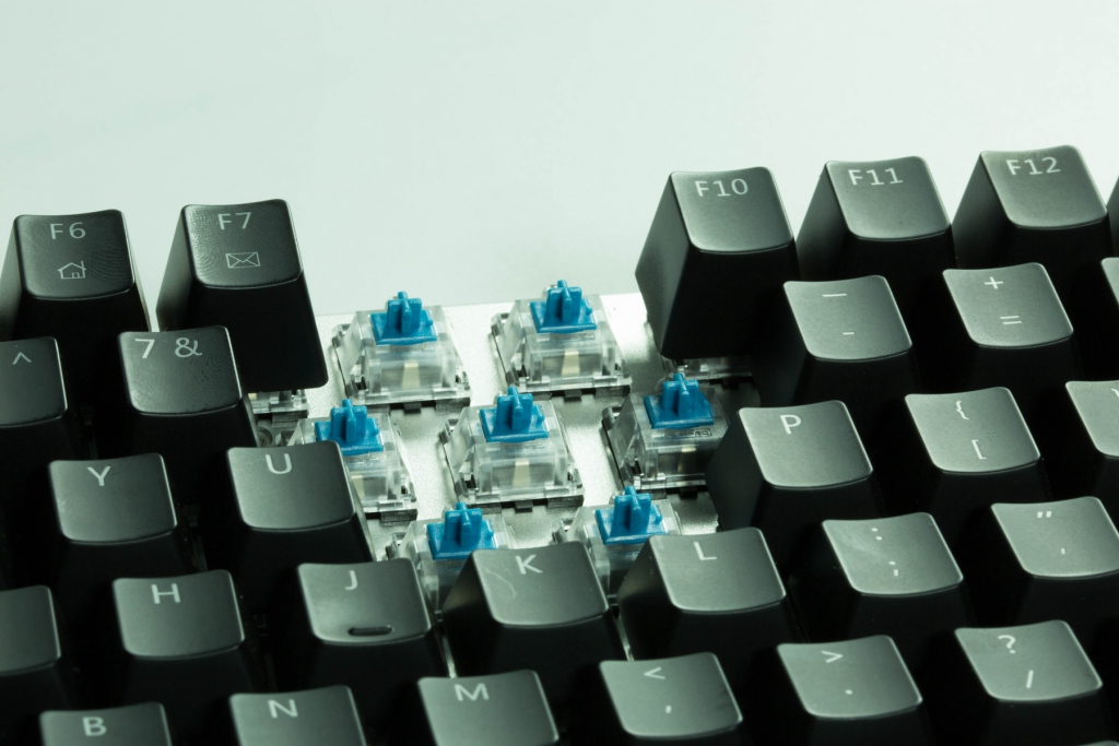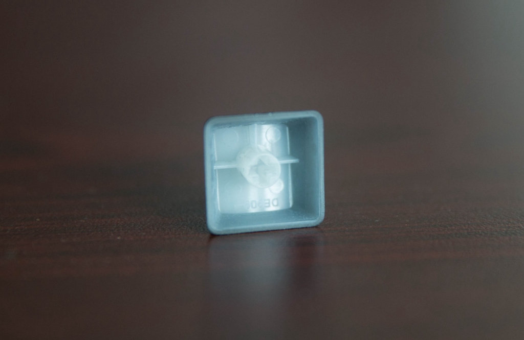 键帽采用 ABS材质,表面具有耐磨类肤图层,非常细腻,初上手时很细腻,不过仍然避免不了长时间使用后不了打油的问题。ABS键帽的通病。 同时,键帽并不是简单的类肤涂层,所有键帽都是先上过一层银油之后在进行喷涂涂层,这样做使键帽透光更加均匀,灯光效果更为出色。并且,键帽并不像目前很多低端键盘的键帽一样一部分采用镂刻,一部分采用印字,而是全部采用镂刻,又为整体视觉效果带来了很大的提升。
