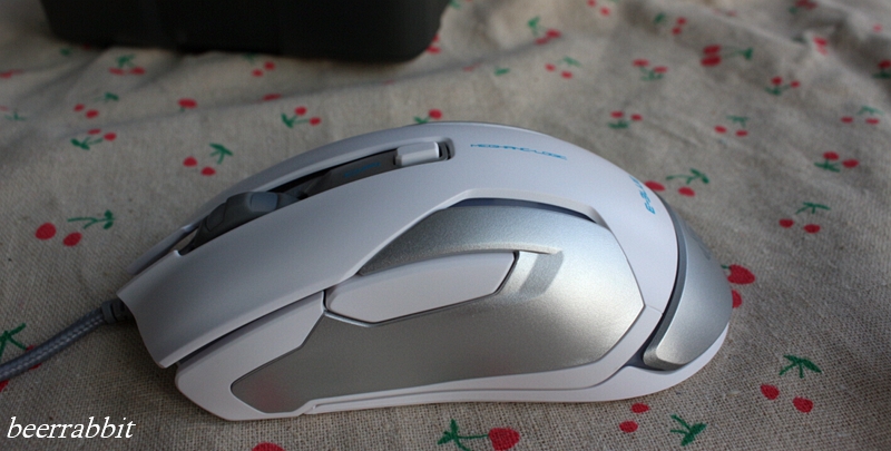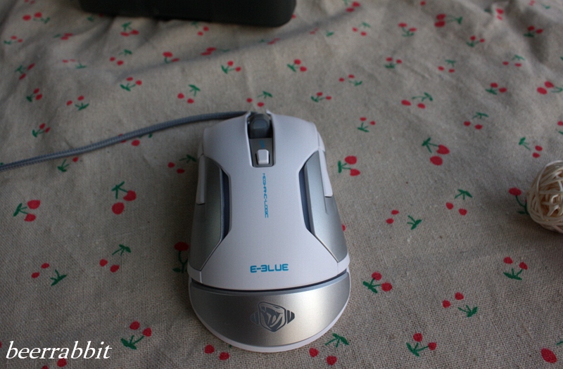 鼠标保持了宜博鼠标一贯的科幻元素,像什么变形金刚、钢铁侠鼠标,鼠标整体看起来有多个模块。鼠标主体部分是白色磨砂漆面,两个侧边跟尾部采用的是银色漆面,整体的漆面感觉都不错。