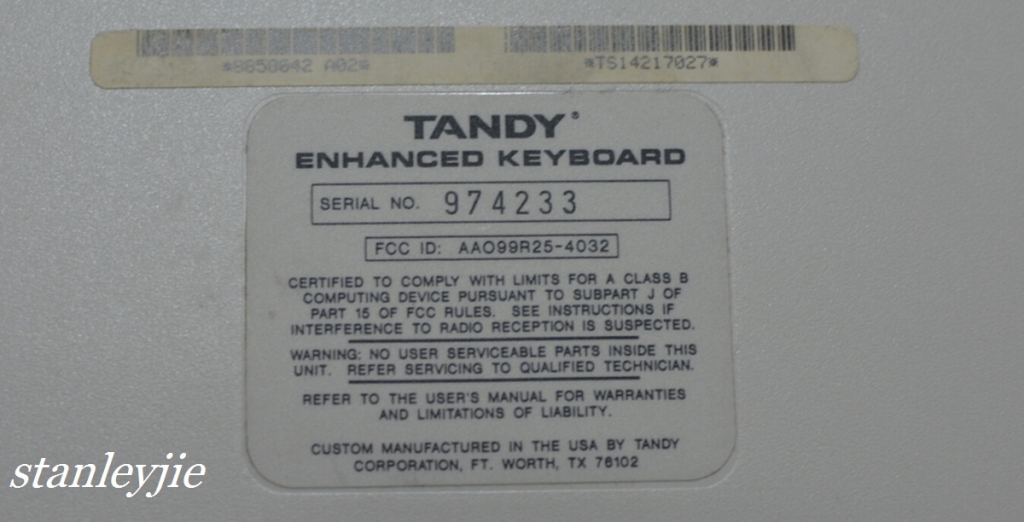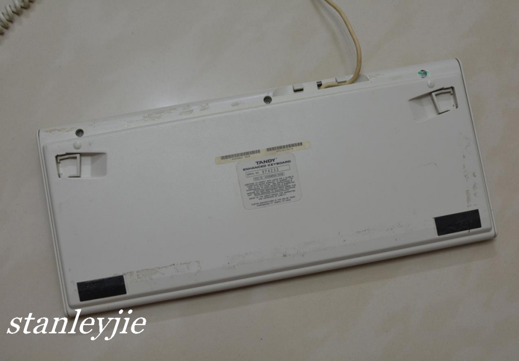 ▲铭牌。没有说明是哪个公司生产的,只能从键盘的其他细节判断。最后一行可以得知这个键盘是由tandy公司定制使用。