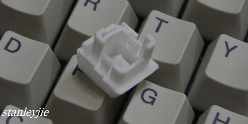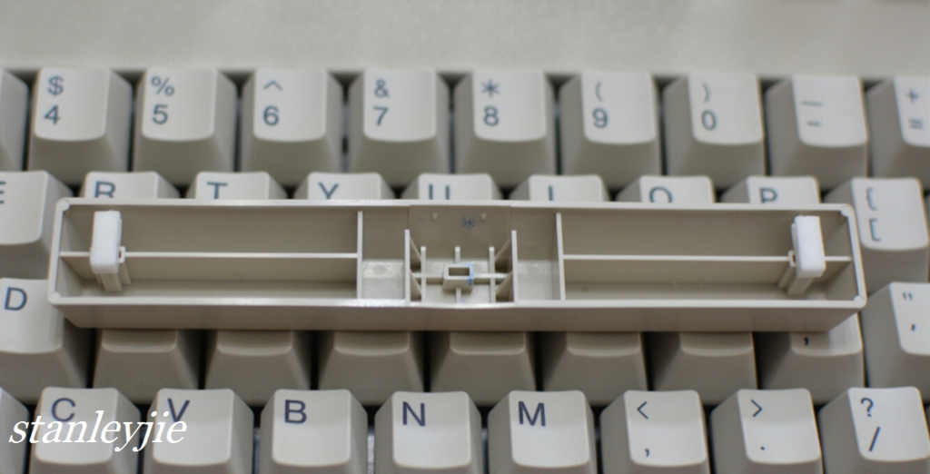 ▲看一下键盘的大键位,采用的是平衡杆。 内层键帽上有个蓝色竖条记号,刚开始还以为ylj商做了什么记号,后来看了man大的帖子,这个键盘的大键位的内层键帽上均有这个记号。