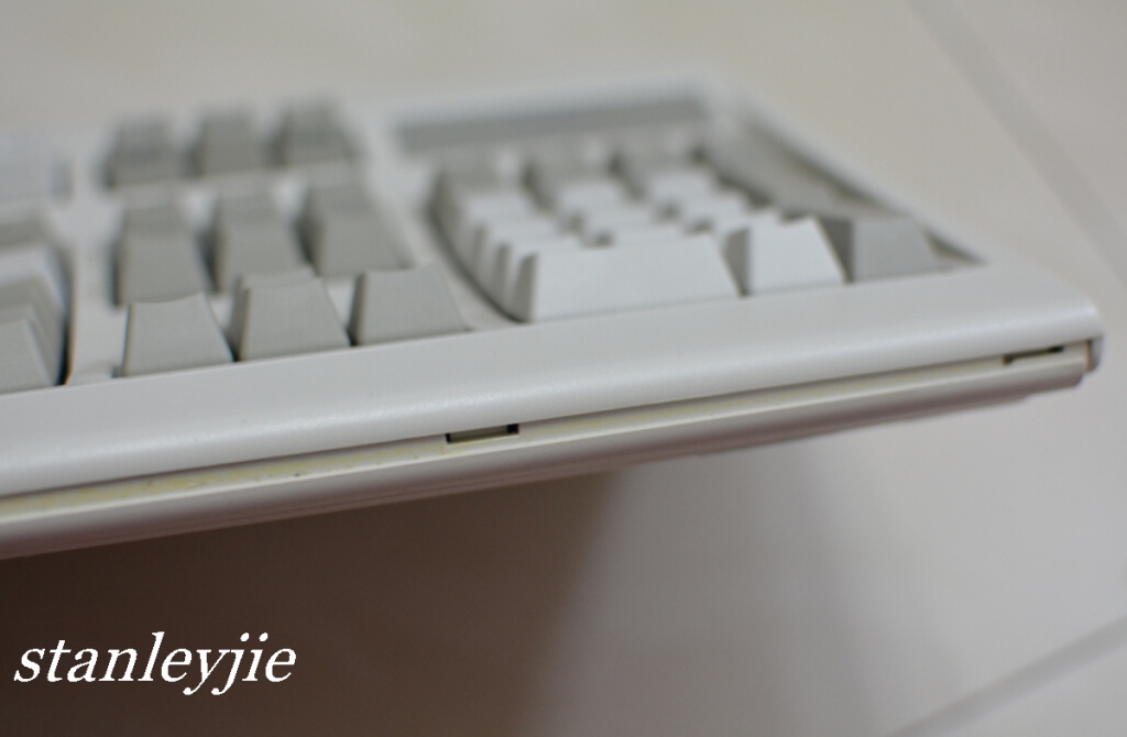 ▲早期的键盘,人体工学,只能通过这种弧形的钢板来实现,而不是像现在通过键帽的阶差来实现,早期的键帽都是统一高度的。