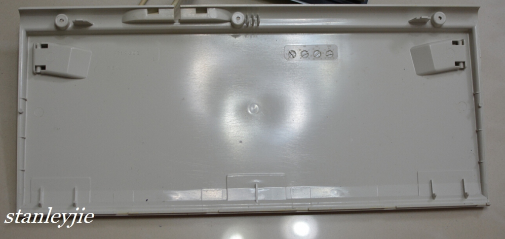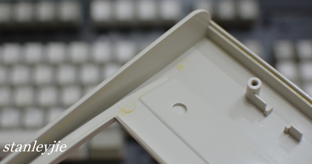 ▲键盘背面。键盘背面的成色远没有正面好,有不少胶带贴条的痕迹。