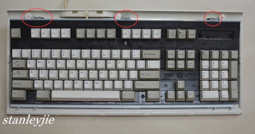 ▲拆解 这个键盘的拆解是我见过最好拆的老键盘了,只要把背后顶上的三个螺丝卸掉,底下的卡扣也不是很紧,轻松拿掉上盖。