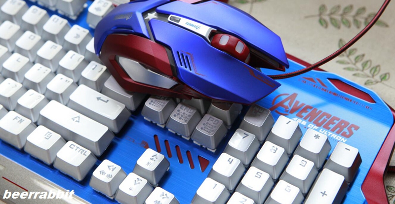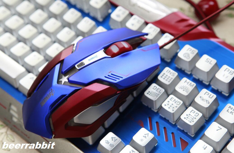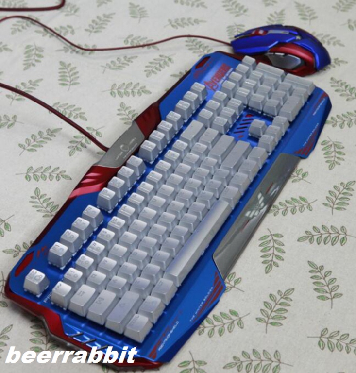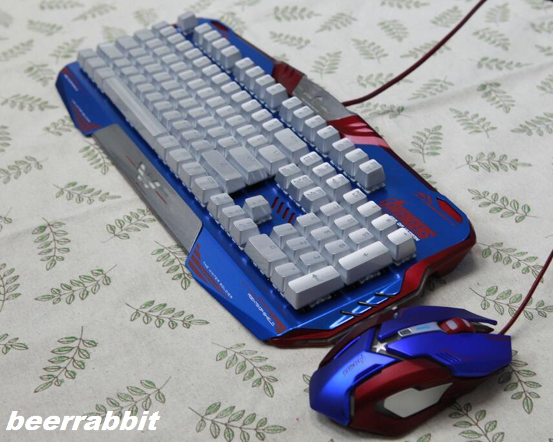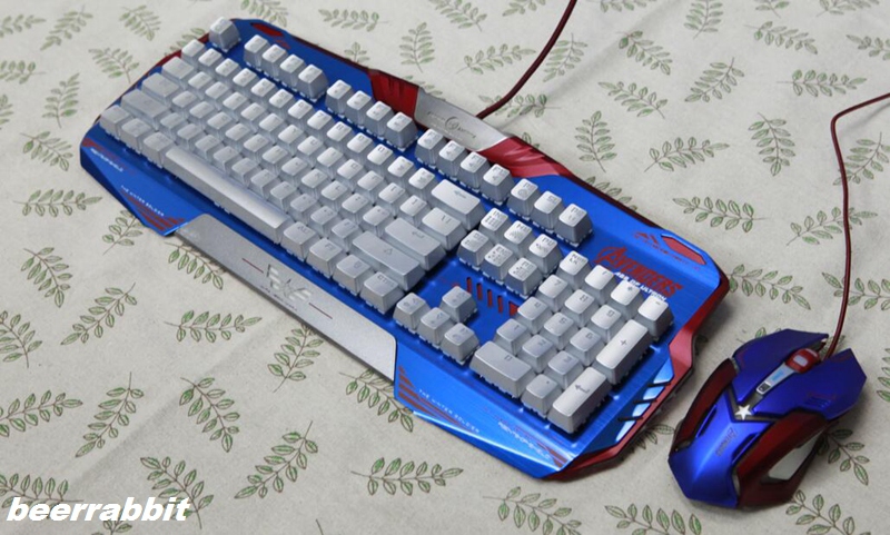 最近终于收集了2个美国队长版装备,一个是宜博k729机械键盘,一个是宜博m639鼠标。