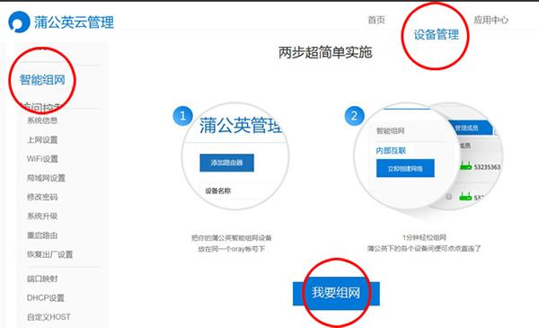 接下来单刀直入,打开“设备管理”-->“智能管理”-->“我要组网”,在跳转到的管理界面中,点击“添加路由器”。