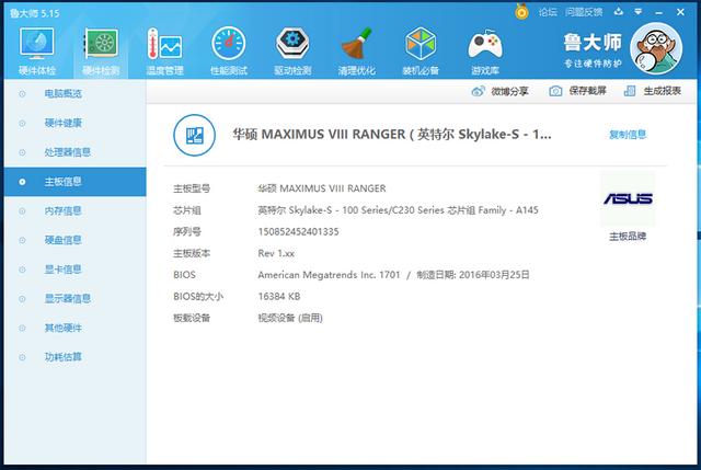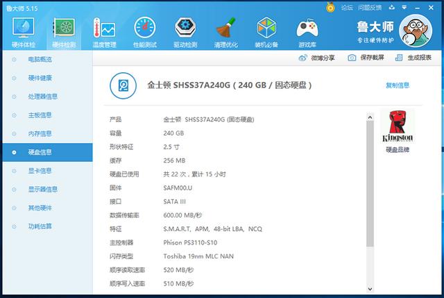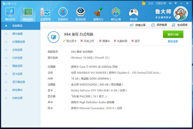 鲁大师看下硬件配置