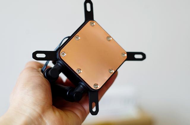 冰塔T120水冷这做工还是相当不错的,与CPU贴合处采用了纯铜贴面,散热效果更出色;这款水冷的配件很丰富,连硅胶都带了,让人感动不已,水冷支架与底座可以更换,适合Intel与AMD双平台使用。