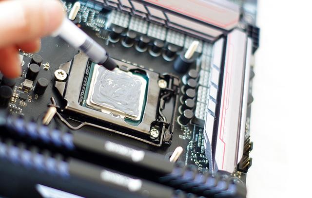 往英特尔(Intel)酷睿四核 i7-6700K上面加硅胶,涂法不专业,过程忽略。