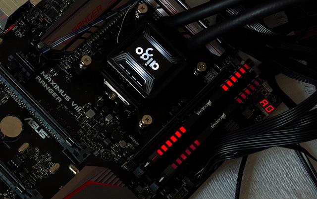 开机试下“光污染”,冰塔T120水冷CPU散热台常亮着爱国者LOGO标志,水冷的风扇也选择了白色,其实喜欢玩“火焰”的小伙伴也可以换成红色的LED风扇;另外,红梳子的红色呼吸灯也很带感。
