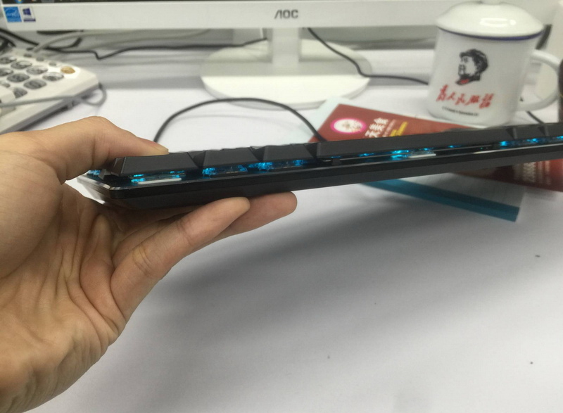 键盘机身很薄,最后的地方22.5mm,最薄是键盘下沿,仅8.9mm,重量是520g,好吉利的数字。