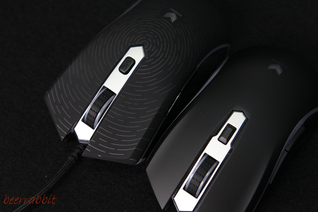 两个鼠标的左右按键都采用了20m微动,键程中等,声音清脆,光学引擎采用PMW3320光学引擎,dpi最高能达7000,满足各种游戏的需求。