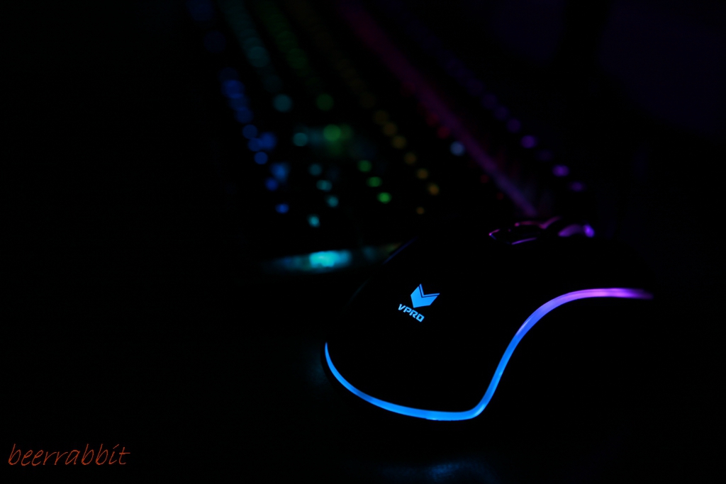 鼠标的背光跟雷柏近期推出的产品一致,升级了幻彩流光模式,另外保留了呼吸灯,apm呼吸灯,光谱循环等多种灯效。实际效果鼠标可以自定义前、中、后三区RGB背光,而且背光效果过渡自然而不突兀。