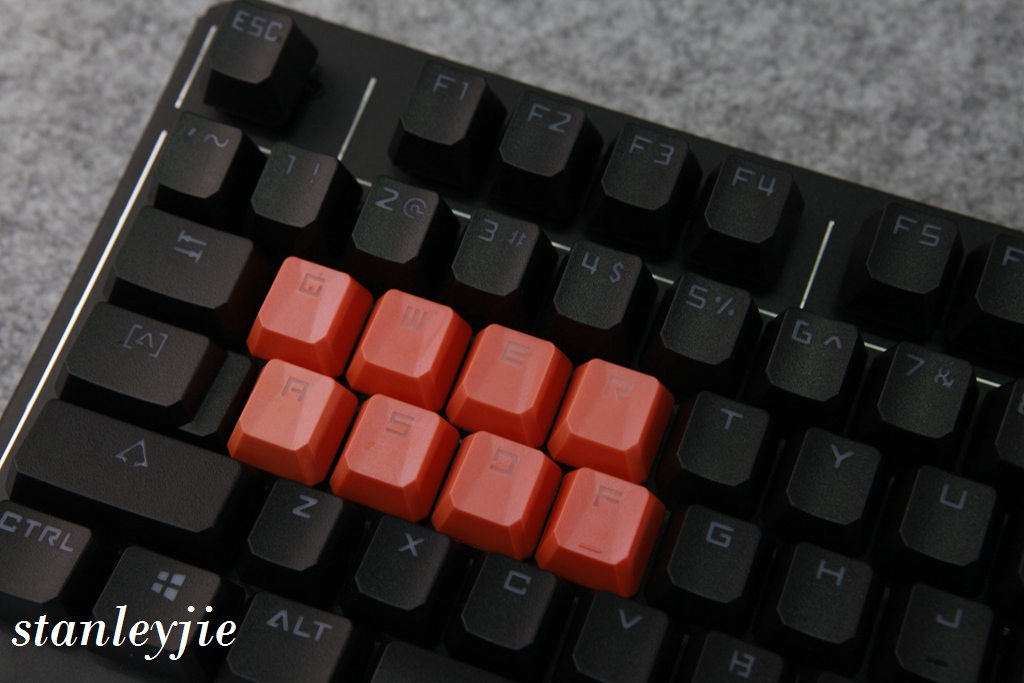 配件中赠送了8个橙色键帽,不过很多游戏键盘赠送的这几个位置的键帽一般也是用红色。