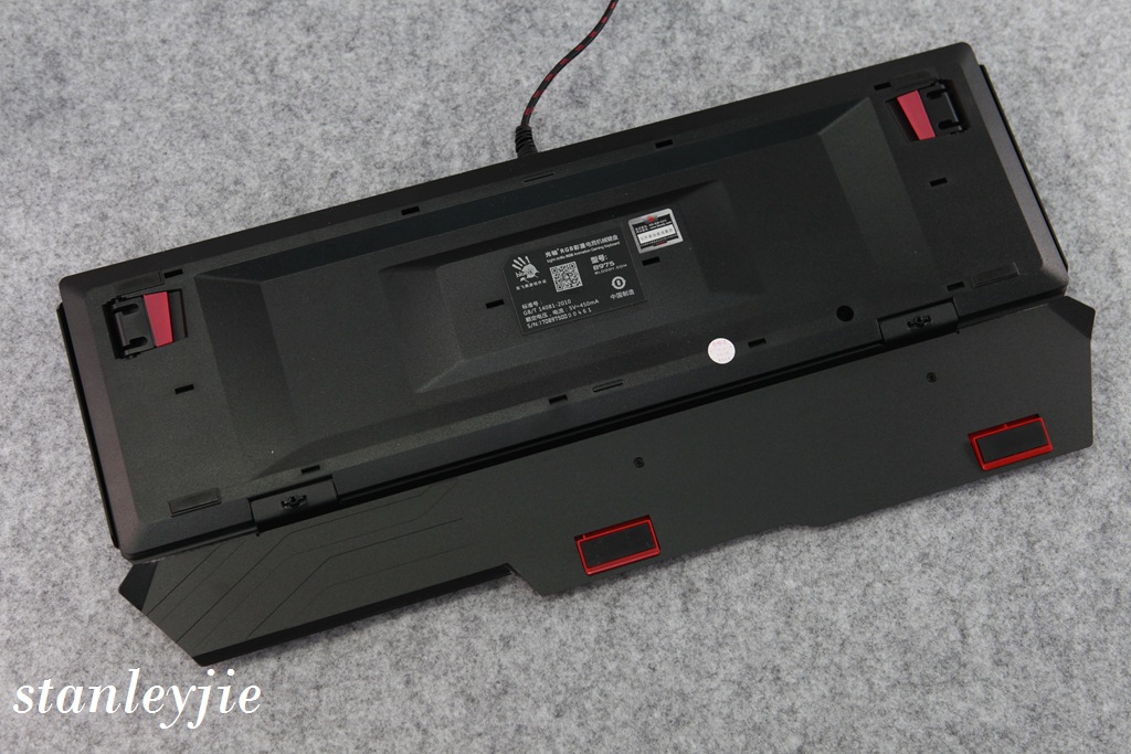 2.红之手托。产品本是中规中矩的黑色键盘,但是因为配件可拆卸手托而增色不少。