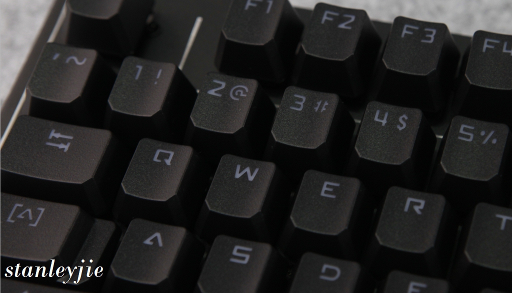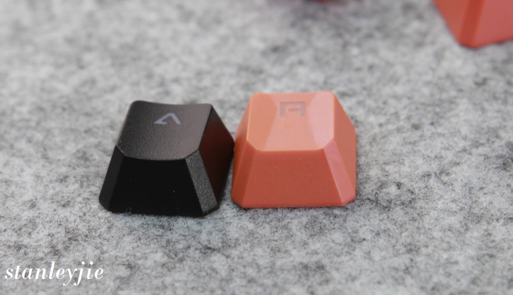 1. 键帽并非采用常见四角键帽,而是把键帽下面两个角进行切边处理。