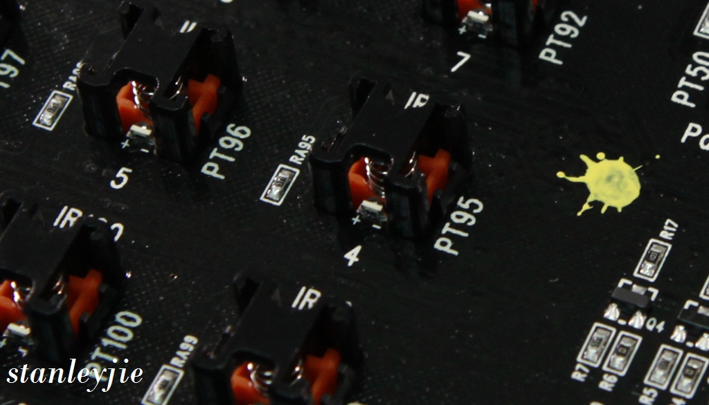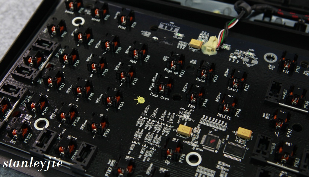 ▲但是从键盘背后的排水孔,光轴的特性,还有pcb板进行纳米防水涂层处理的细节,以及以往对光轴键盘的评测经验,键盘应该有一定的防水能力,但仅限于防溅水而不是浸水。