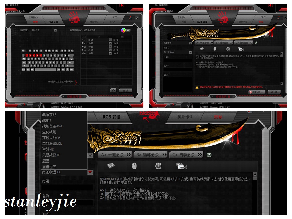 ▲说到血手,一定离不开它的驱动,原先我只知道它家的鼠标有强大的驱动并在P93里面见识到了,没想到键盘一样有强大的软件支持,还有个很nb的名字《控键宝典》。驱动之所以强大,是因为它不但有普通的宏编程,还有内设了一些热门游戏的宏编程,甚至还有高阶的奥斯卡II。在奥斯卡II中,还能让玩家功能允许用户通过键盘、鼠标、动作、控制、运算等5个方面进行编程,带来的效果是双刃剑,一方面功能强大,一方面学习成本高,因为我扫一眼觉得相当的眩晕。