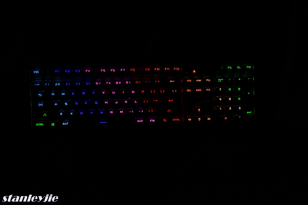 ▲很奇怪的把背光写在驱动这个环节,是因为在背光方面,键盘虽然是RGB背光,并内置10种灯效,不过相信见多评测的人都觉得没啥,更多种背光的键盘我们都见过。