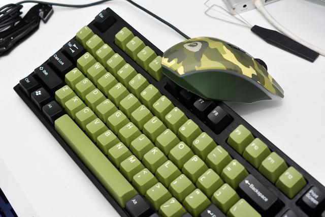 玩外设的老司机知道,多达104颗键的键盘不能每颗都迷彩,更适合做1~3色的混色方案,这样它就还是个“键盘”。
