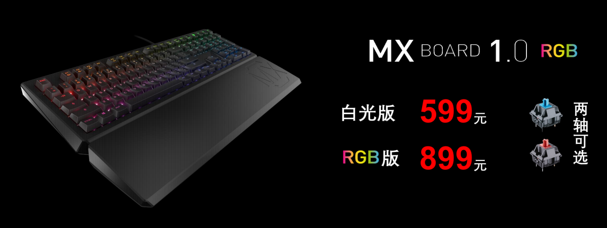 此外CHERRY推出了全尺寸MX1.0,分别有白光版和RGB版本,全尺寸版本均提供手托